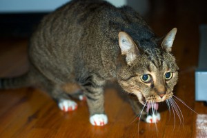 Если животное подавилось, то у него возникают не прекращающиеся, а лишь нарастающие позывы к рвоте, которые невозможно спутать с обычным кашлем. Если они остаются безуспешными, а также кот не может ничего проглотить – ни пищу, ни воду, ни собственную слюну – то с высокой степенью вероятности можно говорить о том, что ваш питомец действительно подавился и инородное тело вызывает раздражение его нежных глотки и пищевода. В таком случае действовать нужно незамедлительно.