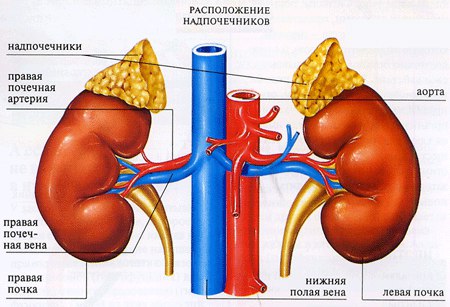 Надпочечники расположены над почками. Наружный слой железы, называется корой надпочечников и вырабатывает гормоны: кортизол, ДГЭА, эстроген и тестостерон. Кортизол является необходимым для жизни, он выполняет несколько важных функций, которые непосредственно участвуют в преобразовании протеинов в энергию, высвобождая гликоген, и обладает противовоспалительным и иммунодепрессивным действием.