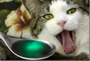 Можно предложить кошке попробовать съесть добровольно, потому что лекарства для животных производители изготавливают с травами, которые так нравятся им в их дикой среде.