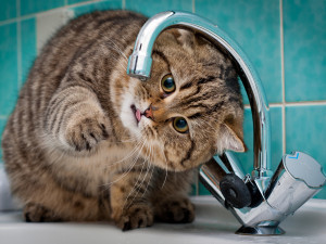 - Некоторые коты и кошки любят только проточную воду. В таком случае следует приобрести фонтан-поилку или чаще оставлять кран открытым.
