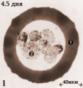 После успешного оплодотворения происходит митоз. Митоз – это процесс при котором оплодотворённая клетка разделяется на две клетки, каждая из которых имеет исходное строение. Генетически получившиеся копии идентичны. Этот процесс деления клеток будет происходить каждые 10 – 14 часов. После четырёх клеточной стадии, клетки уже не тотипотентны, но деление продолжается, клеток становится все больше и больше. Тотипотентность – способность клетки путем деления дать начало любому клеточному типу организма. Эта стадия называется стадией дробления, потому что клетки только делятся, сам эмбрион еще не растет. На четвертый день после оплодотворения яйцеклетка представляет шарик из, примерно, 30 клеток, который называется морулой.
